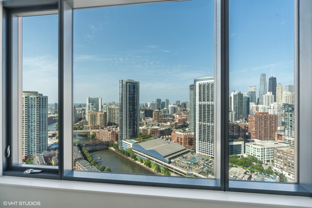 Penthouse #3102 at Cassidy on Canal offers a sophisticated living experience with floor-to-ceiling windows that provide panoramic views of Chicago’s skyline. The interior features elegant pinecone oak flooring, Silestone Quartz countertops, and designer cabinetry. Enjoy luxury amenities such as keyless entry, a full-size GE washer and dryer, and an Ecobee thermostat. The spacious kitchen includes under-cabinet lighting and premium stainless steel appliances. Expansive terraces come equipped with built-in gas grills, making this penthouse perfect for entertaining while enjoying breathtaking city views.